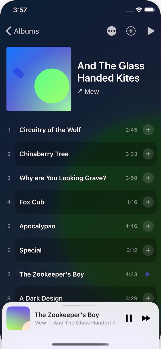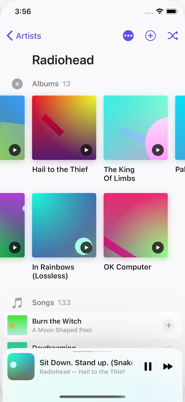 Clutter-free interface with big, beautiful artwork and lovely typography.